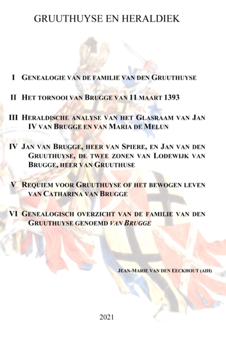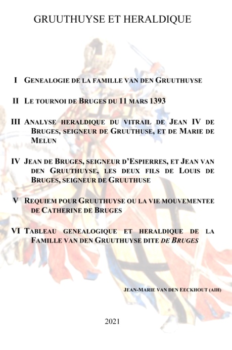 des articles parus dans Heraldicum Disputationes et Vlaamse Stam), Sint-Niklaas, 2020. Généalogie de la famille van den Gruuthuyse Le tournoi de Bruges du 11 mars 1393 Analyse héraldique du vitrail de Jean IV de Bruges, seigneur de